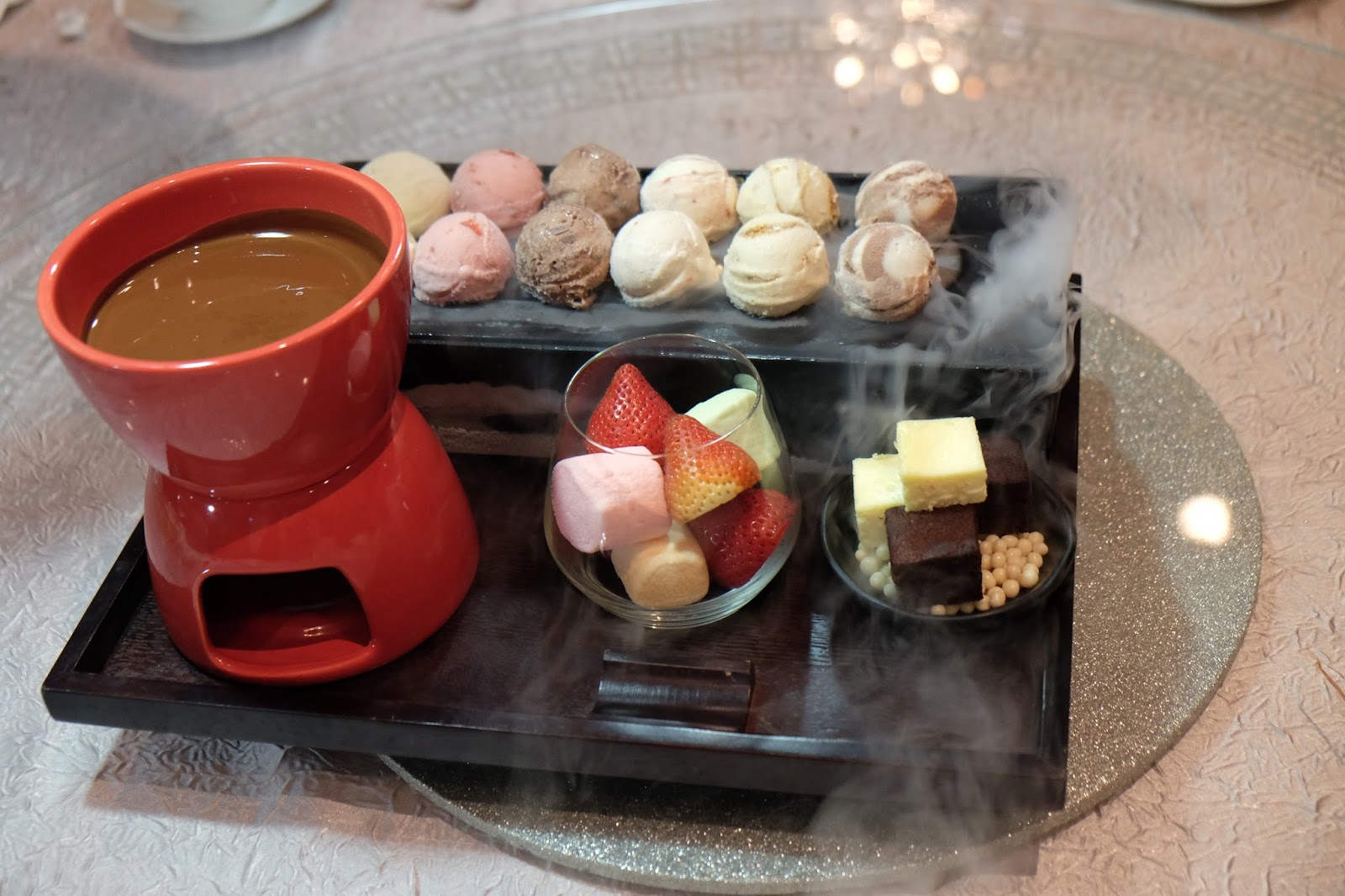 Ice Cream Chocolate Fondue,仙氣繚繞的賣相,更加挑起食慾,手12款Movenpick雪糕,伴以棉花糖及芝士餅,用甜品叉挑上一球雪糕,蘸點一下,讓朱古力漿緊密包裹了雪糕,在這個炎夏吃上一球,真是最適合不過。