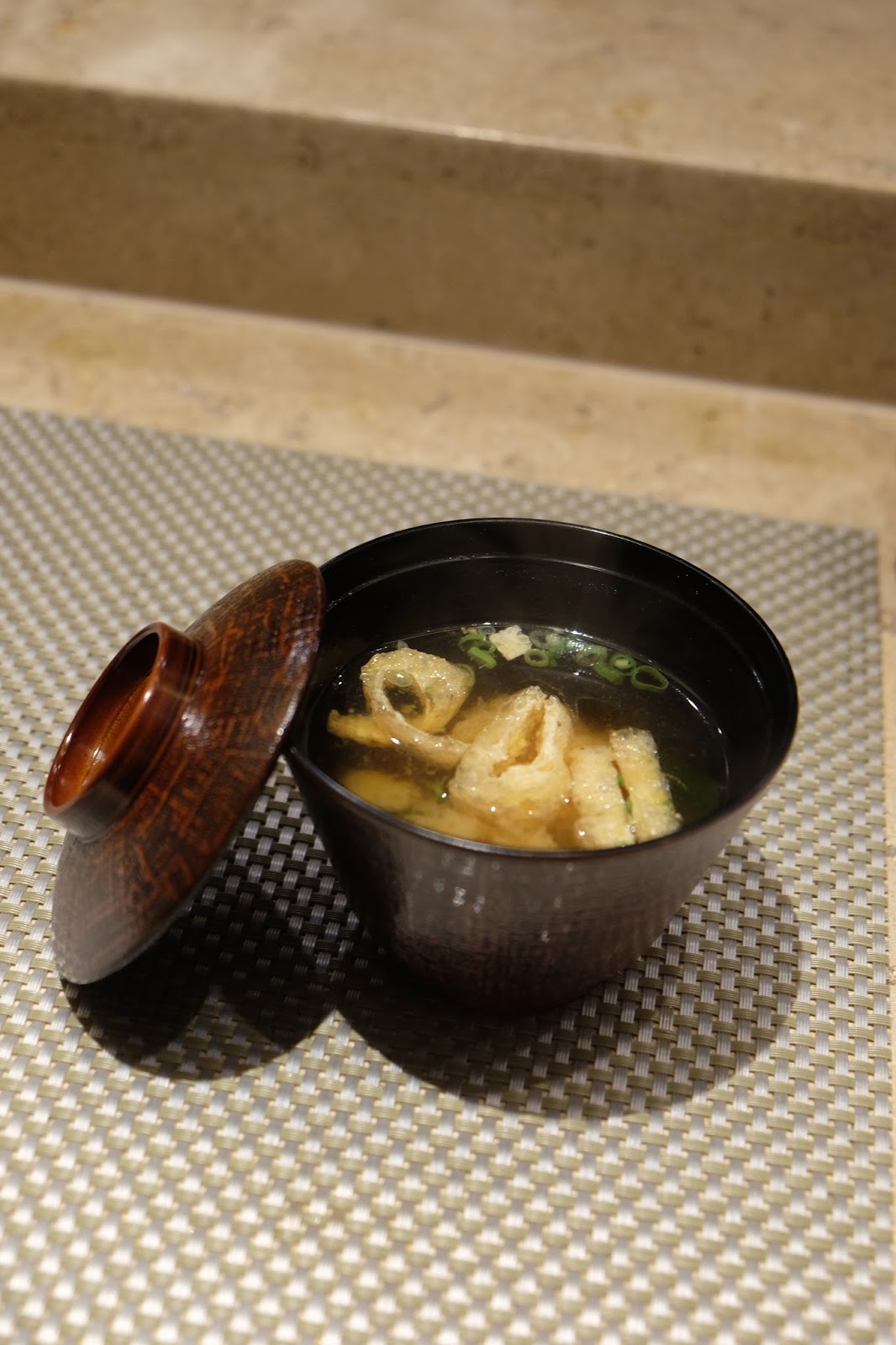 吞拿魚腹油脂分佈平均,有若雪花,有入口即化的感覺;深海池魚肉質清新;而牡丹蝦食落甜美,蝦味濃郁,尤其是蝦頭充滿了蝦膏,甘香豐腴,真是一絕。