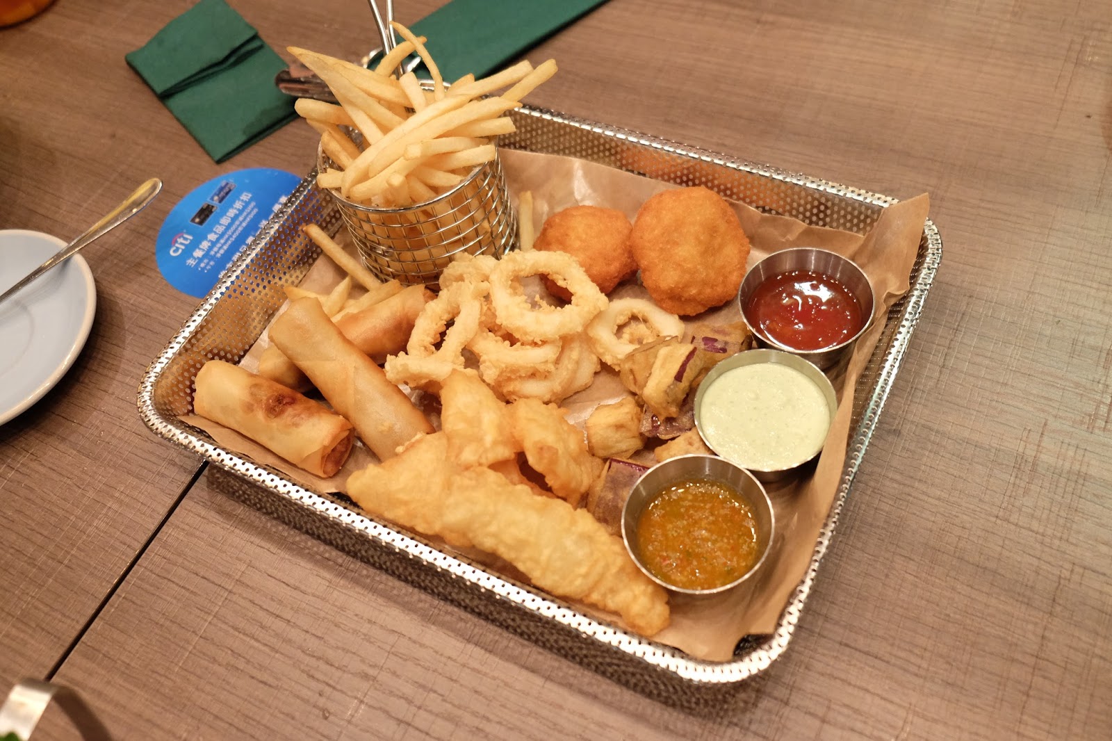 材料實在豐富,細數一下,有薯條、春卷、炸魷魚、炸蝦餅、炸魚柳及炸茄子,配以三種醬料,但看炸漿外層,色澤自然,不會炸得過火,食落油份不多,油溫掌握得準,又是一道佐酒妙品。