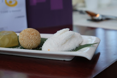 包含了4款點心,棉花糖賣相趣緻,忍不住咬了少少,質地柔韌,不錯;其他幾款點心中,個人幾鐘意小煎堆,炸得香口,熱辣辣的,甜度不高,想不到傳統食品都處理得不俗。
