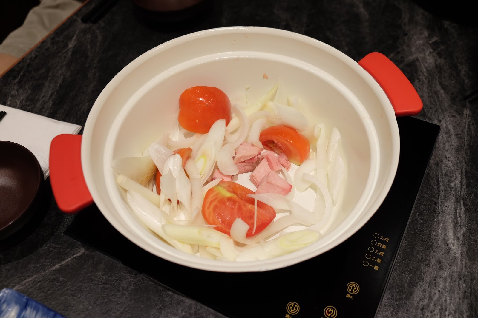 、冬瓜、冬菇、銀芽、翠玉瓜、蘿蔔片、金菇、南瓜、豆腐、豆卜、木耳、大蔥及秀珍菇,種類夠多了吧?
