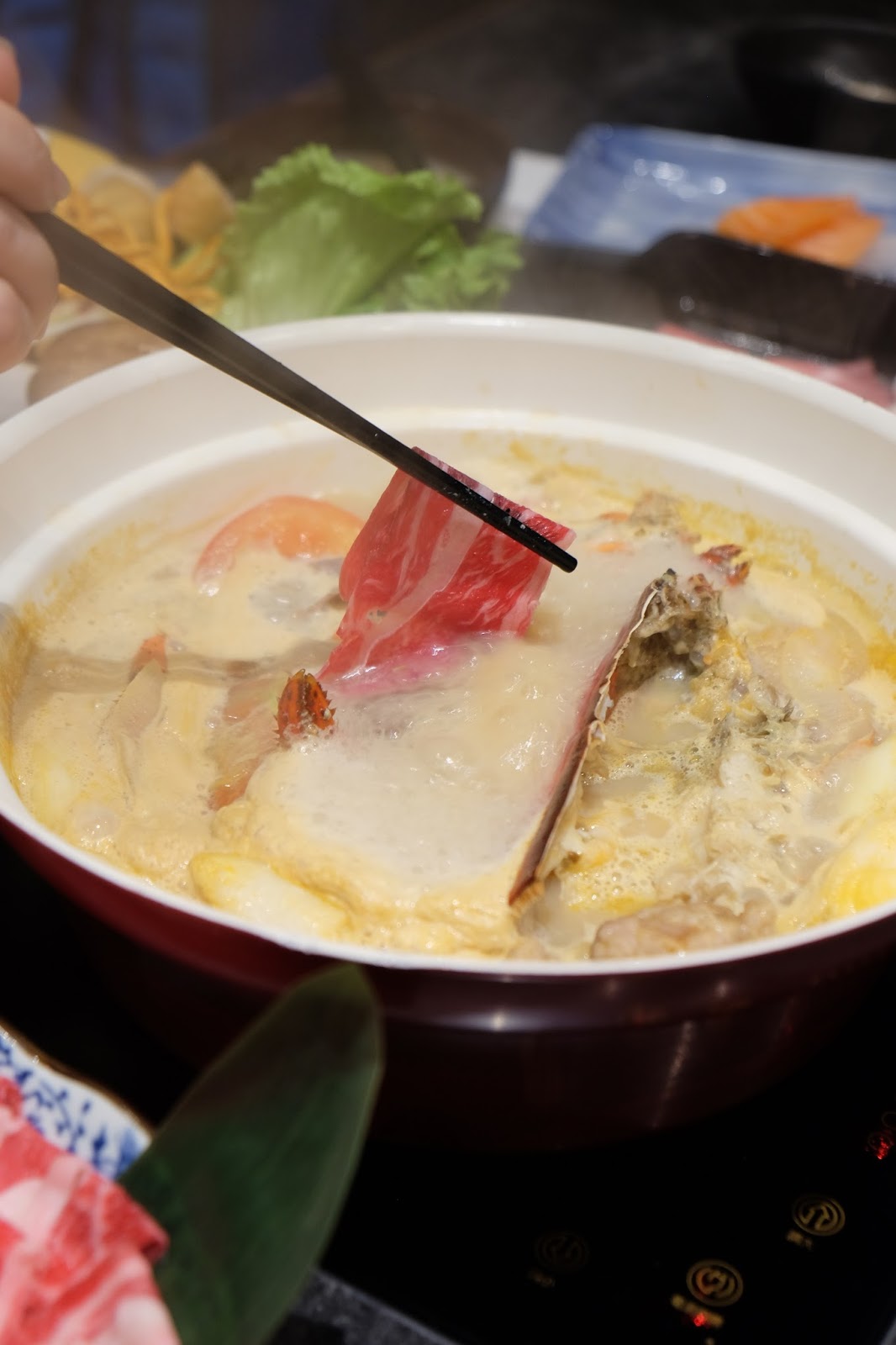 放入湯裡簡單的灼十秒,剛剛熟的狀態最好,入口滿是肉味,油脂分佈平均,超正,一定要食。