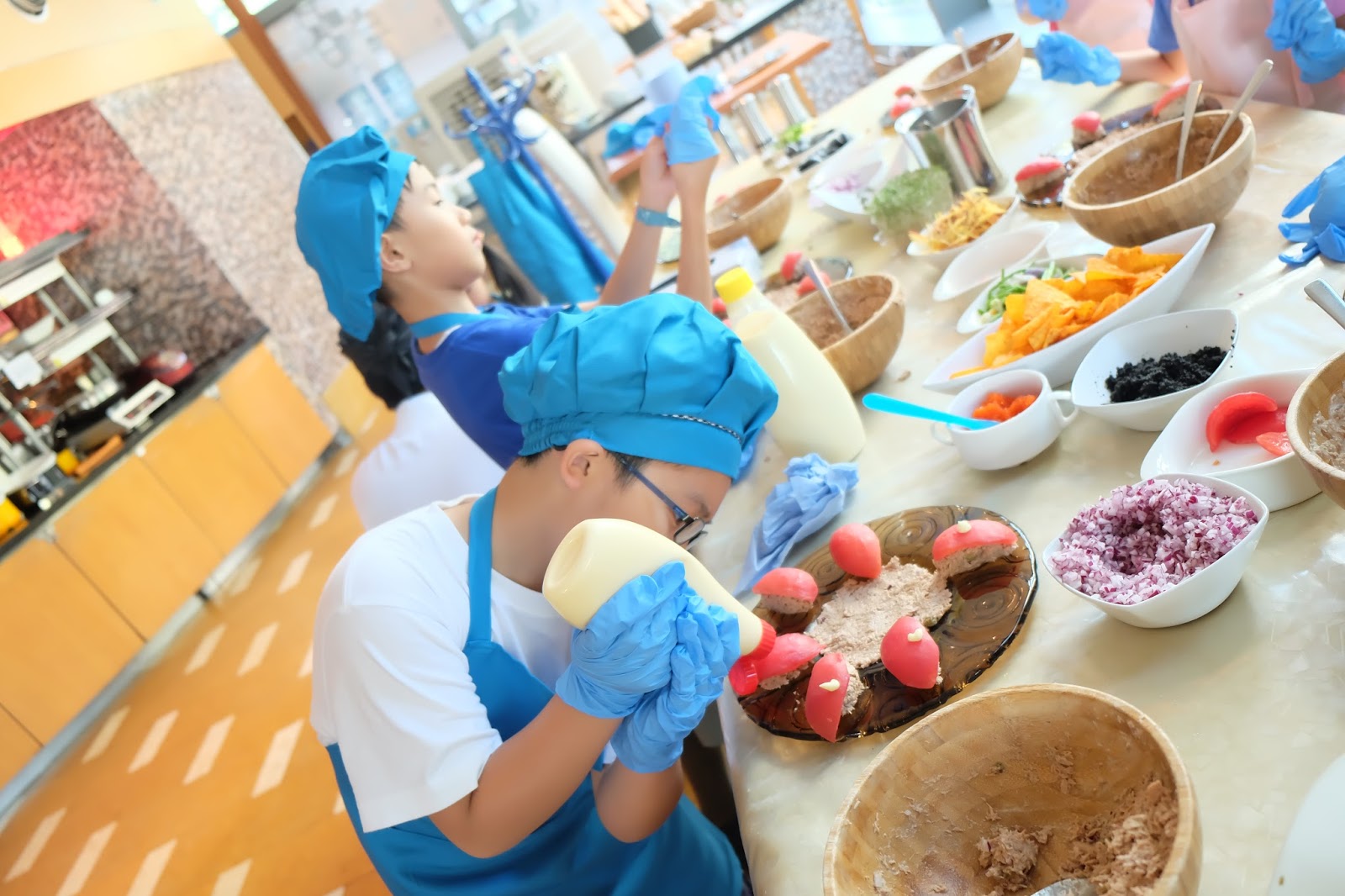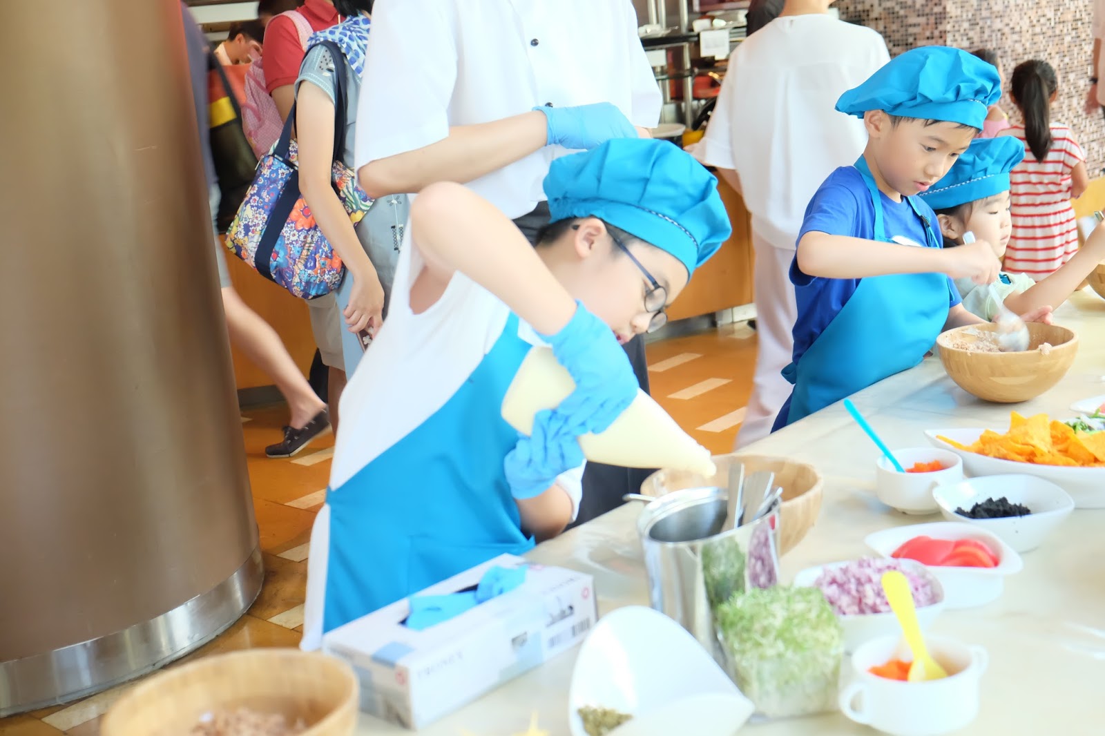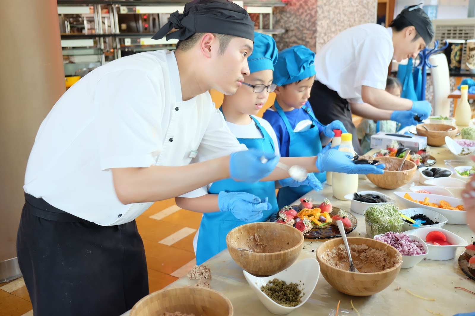 而 Buffet 餐廳下午有小朋友工作坊,不過是自費性質,大概$250左右,可以即場報名,而今次係學整吞拿魚沙律,學完仲會有張證書。