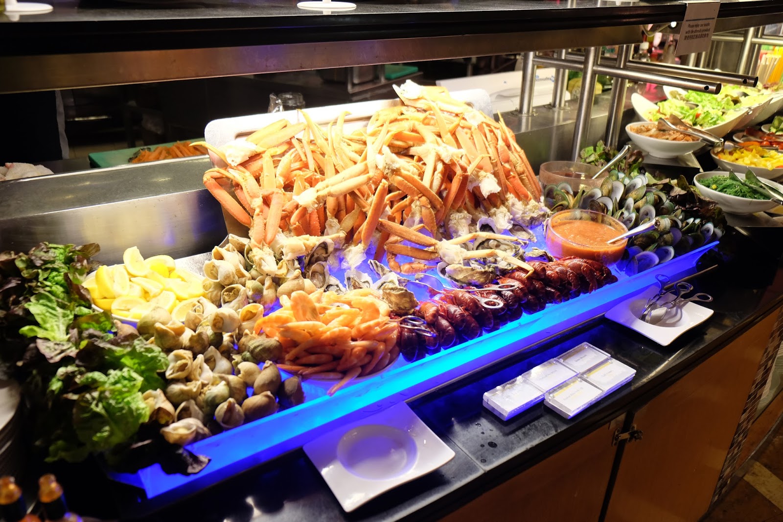 Buffet的海鮮陣容不錯,有生蠔、翡翠螺、藍貝、紅龍蝦仔、青口及凍蝦,而且毫無雪味,解凍過程處理得不錯。