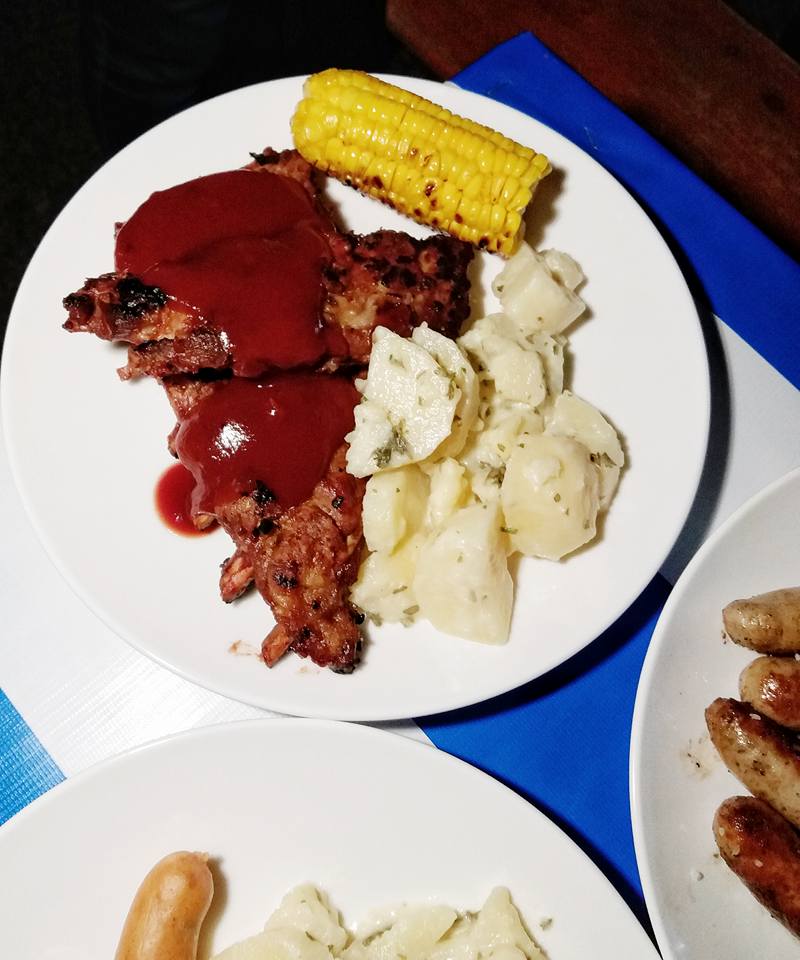 入口處已經見到燒豬膝配紫椰菜、燒豬肋骨配椰菜花及粟米條及香煎紐倫堡腸配酸椰菜,總之足以大家開懷暢飲。
