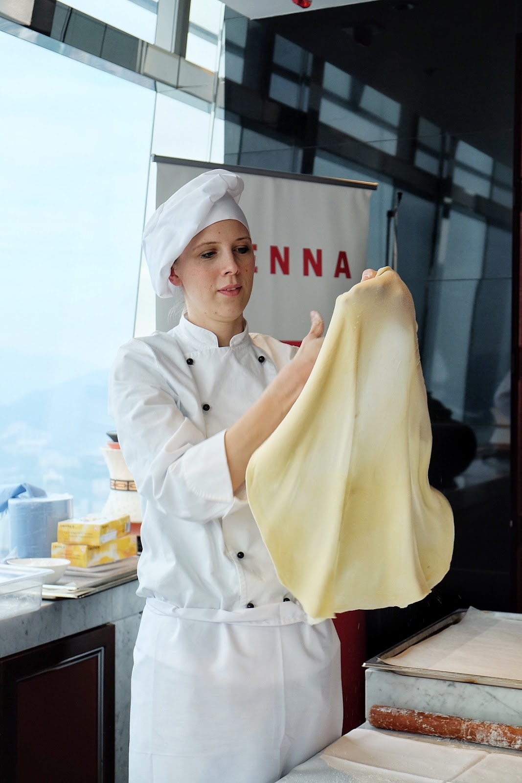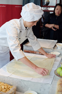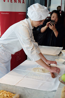 活動首日,邀請了來自 Landtmann咖啡舘的奧地利藉美女廚師,即席為大家示範製作 Apple Strudel 維也納蘋果餡餅,過程相當有趣及簡易。