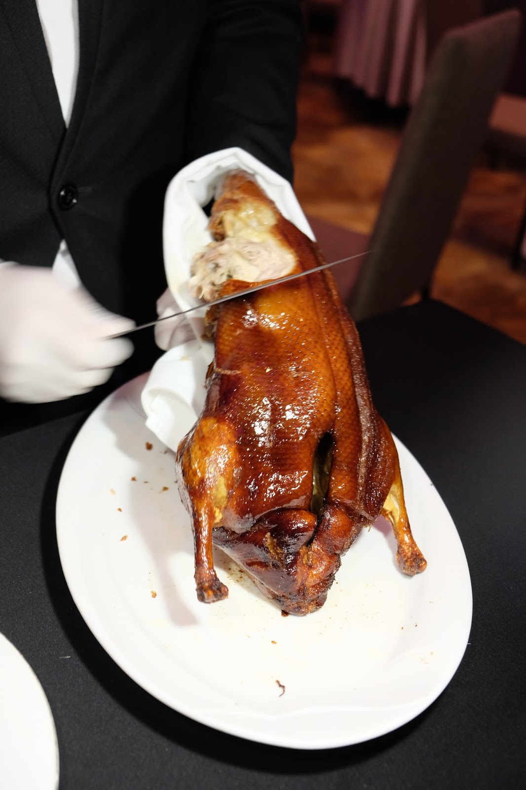 烤得漲卜卜的原隻上,切得工整而賣相亮麗,包皮以蒸籠隔水蒸,配以炸蝦片與及青瓜絲、京蔥絲,食時仍是熱的,很細心的處理,而三色醬料分別是日式芝麻醬、日式柚子汁同傳統烤鴨醬,個人較喜歡柚子醬的清香,食落感到不會太油膩。