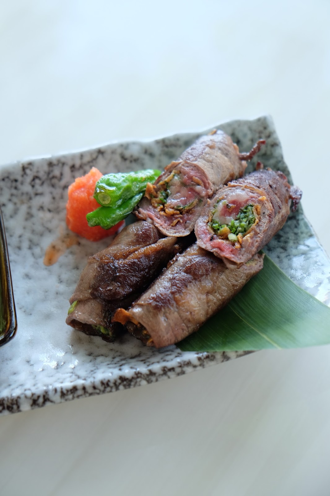 捲得緊密有緻,中間夾了炸過的蒜片及切得細碎的蔥花,每口都充滿了香味,牛肉個人覺得可以更生一點。