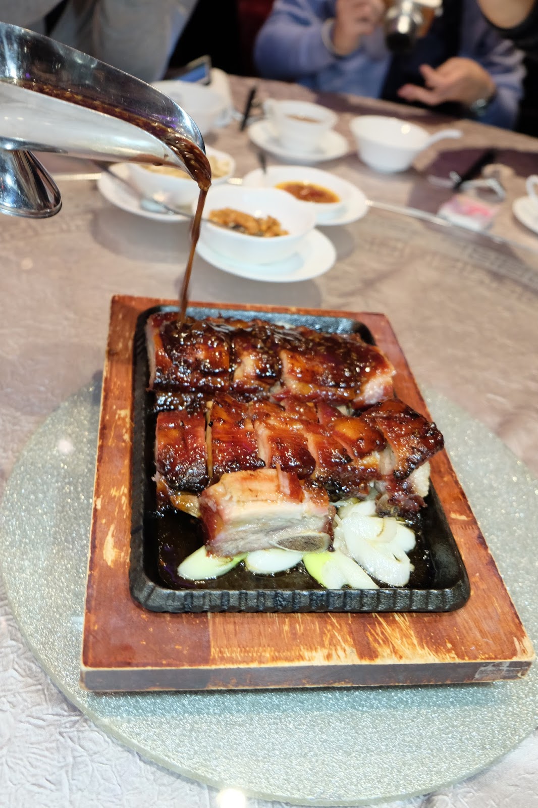 今晚的菜色可說是精銳盡出,鐵板葡萄燒汁烤金沙骨上檯時仍是吱吱作響,墊底的京蔥散發香味,金沙骨軟稔得一咬即開,骨膜位滿是油香,超正,但有點膩,一件起兩件止,最適宜人多的場合。