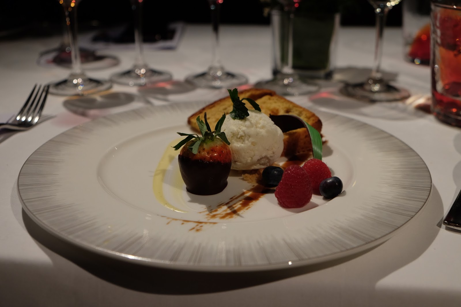 賣相是圓與方的結合,大廚用薯蓉擺放成四邊形,內裡的醬汁加入了達12年兼有認證的黑醋,添上了芳香,亦減輕了油膩感,火腿泡沫帶來淡淡輕盈的咸香,小牛腰肉嫩滑可口,最適宜呷著酒,慢慢的品嚐。