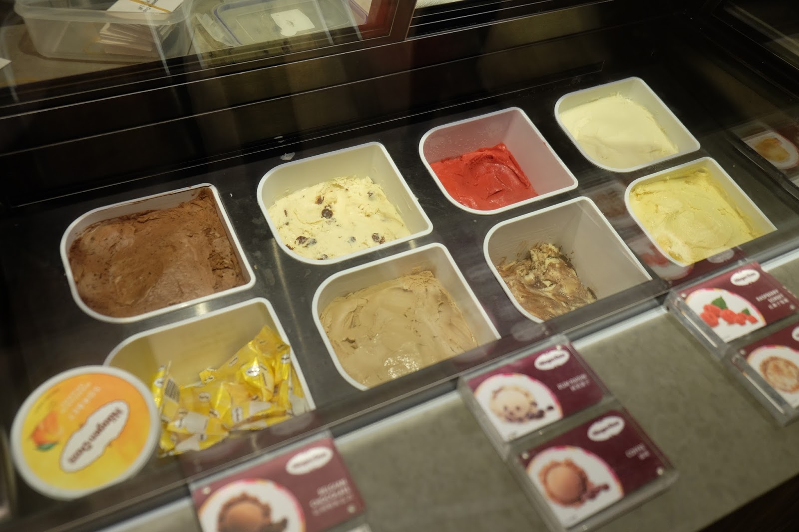 雪糕則有哈根大師既比利時朱古力、紅桑子芒果雪條、冧酒提子、咖啡、紅桑子雪菓、意大利芝士餅、原味乳酪雪糕及芒果味,共8款口味,真係好難忍,點都要掃幾球。