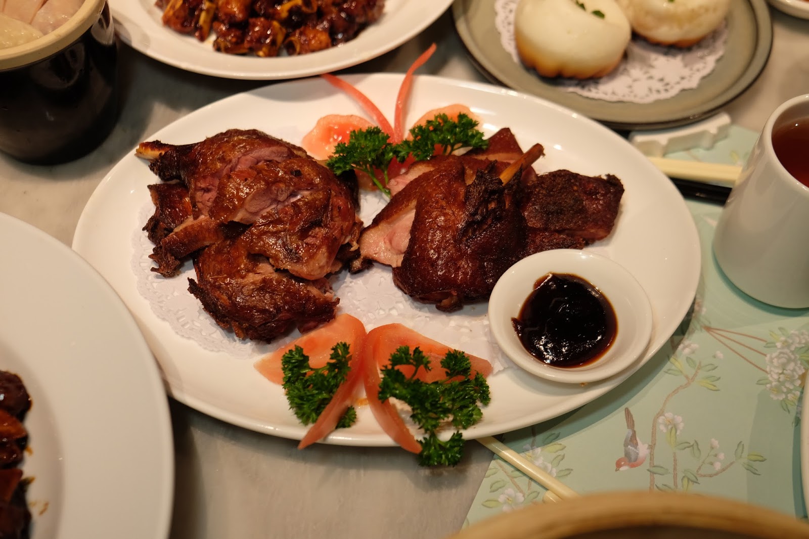 比較乾身,好正常,肉質反而會有更濃的鴨香,伴菜另有蝴蝶包,造型神似,而且質感鬆軟,撕開鴨肉放入蝴蝶包內,足以增添口感。