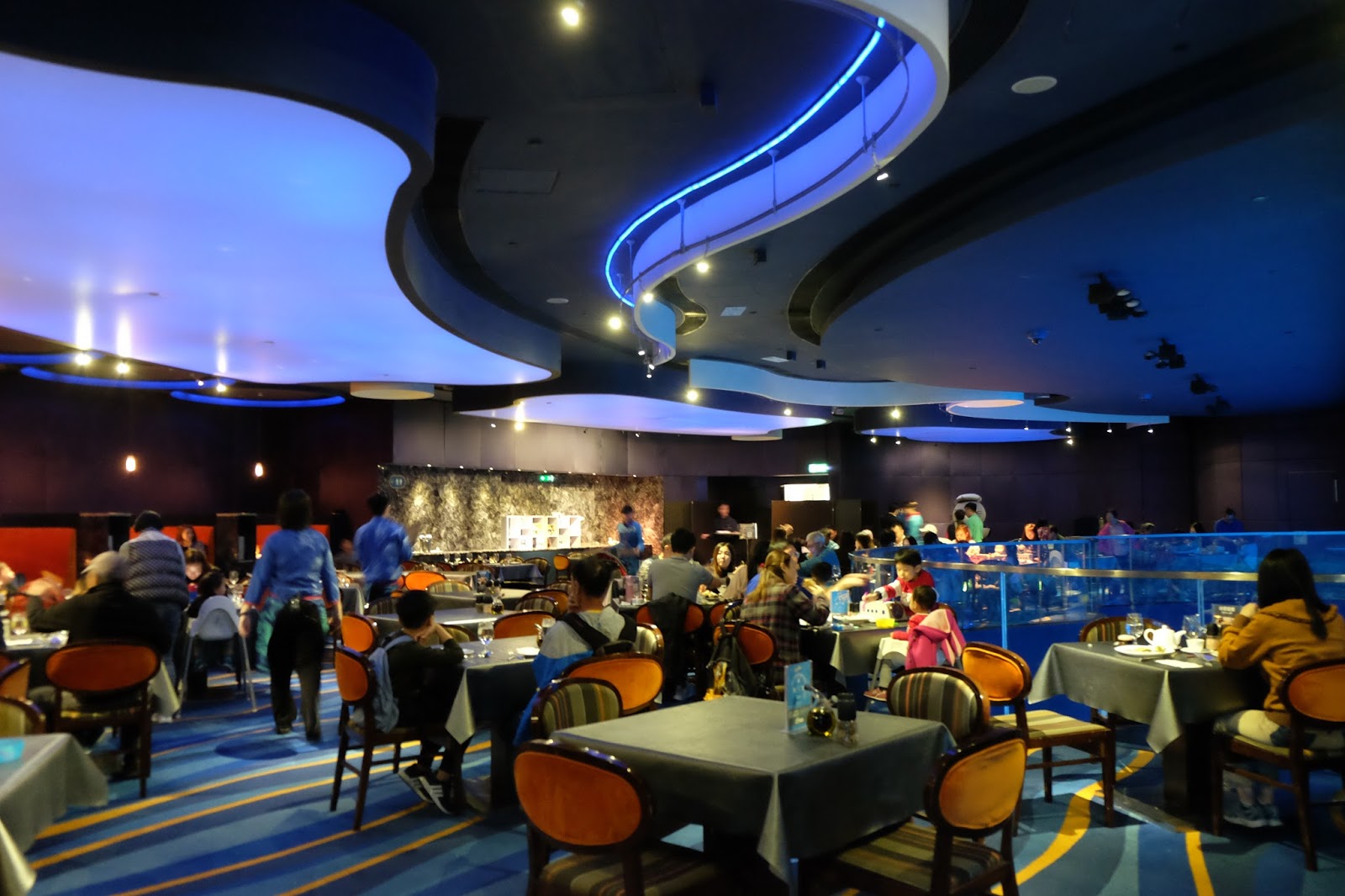 置身海龍皇餐廳,身邊有魔鬼魚、鯊魚及大量海洋生物在身旁跟大家用膳,的確是個令人有趣的體驗。