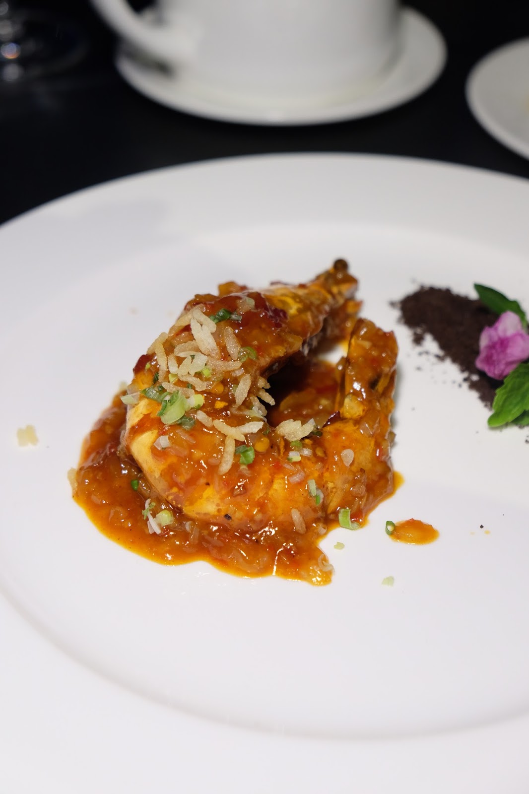同樣選用可持續海鮮,泰國老虎蝦夠大隻,煎得連蝦殼都脆卜卜,澆上泰式甜酸汁,就更惹味,汁醬中夾雜了脆米,令口感更佳。