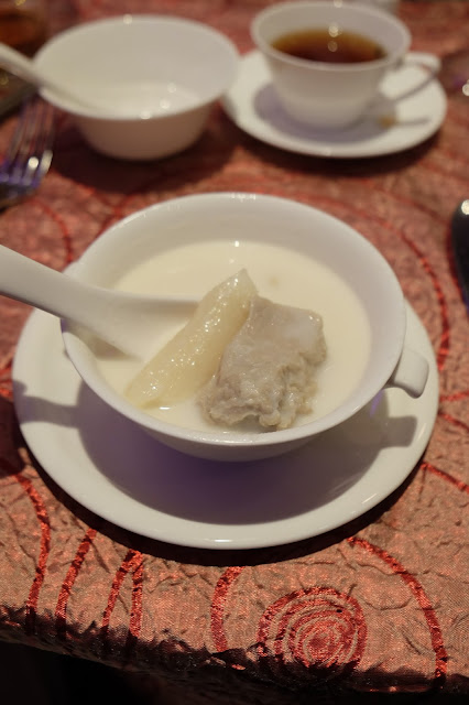 燉湯已經花時間,更要用上花功夫清洗的豬肺,踫上近日咳到甩肺,正好補補,加上滋補的花膠,湯色呈奶白色,好明顯用上長時間隔水燉,入口鮮甜香滑,正。