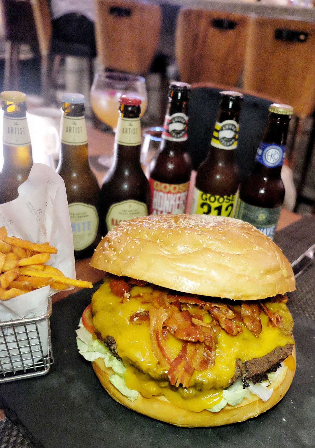 講返今次挑戰,早前已經有幾位實力食友出戰,但都鍛羽而歸,於是決定拉埋另一位千杯不醉食友E,7枝啤酒連蕃薯條交由食友應付,而自己就決戰巨型狂牛漢堡。