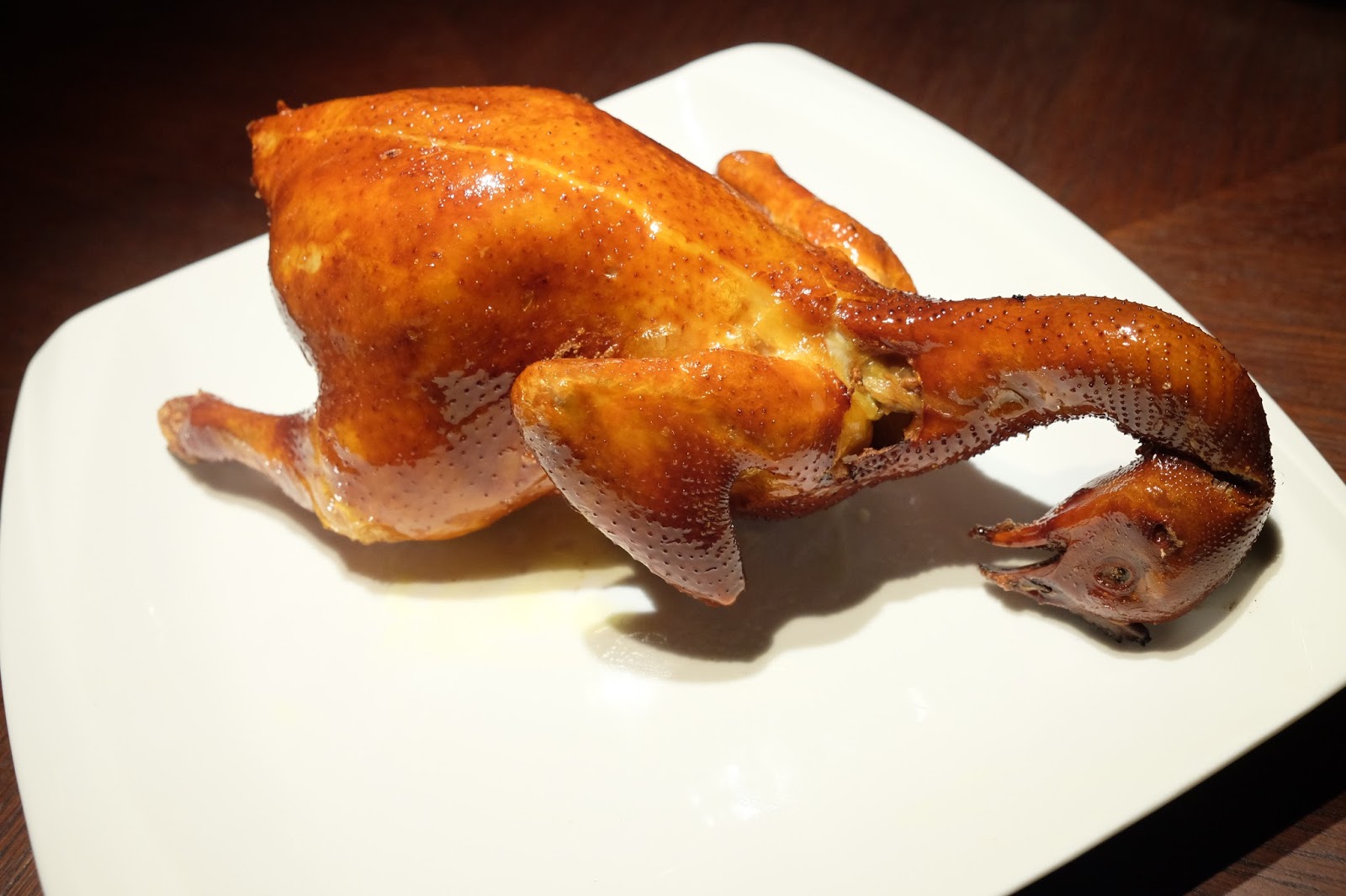 既然作價不菲,自然有所要求,選用兩斤左右雞隻,上檯時還在冒煙,雞皮飽滿,一落刀已傳來陣陣清脆的聲音,即烤即食是不二法門,一隻雞大概片出二十片左右,配上原籠蒸好的包皮,加點甜醬,放上青瓜絲及京惹絲,然後包好,一口咬落,外綿內脆,又有少許雞皮下的脂肪,處理得相當好。