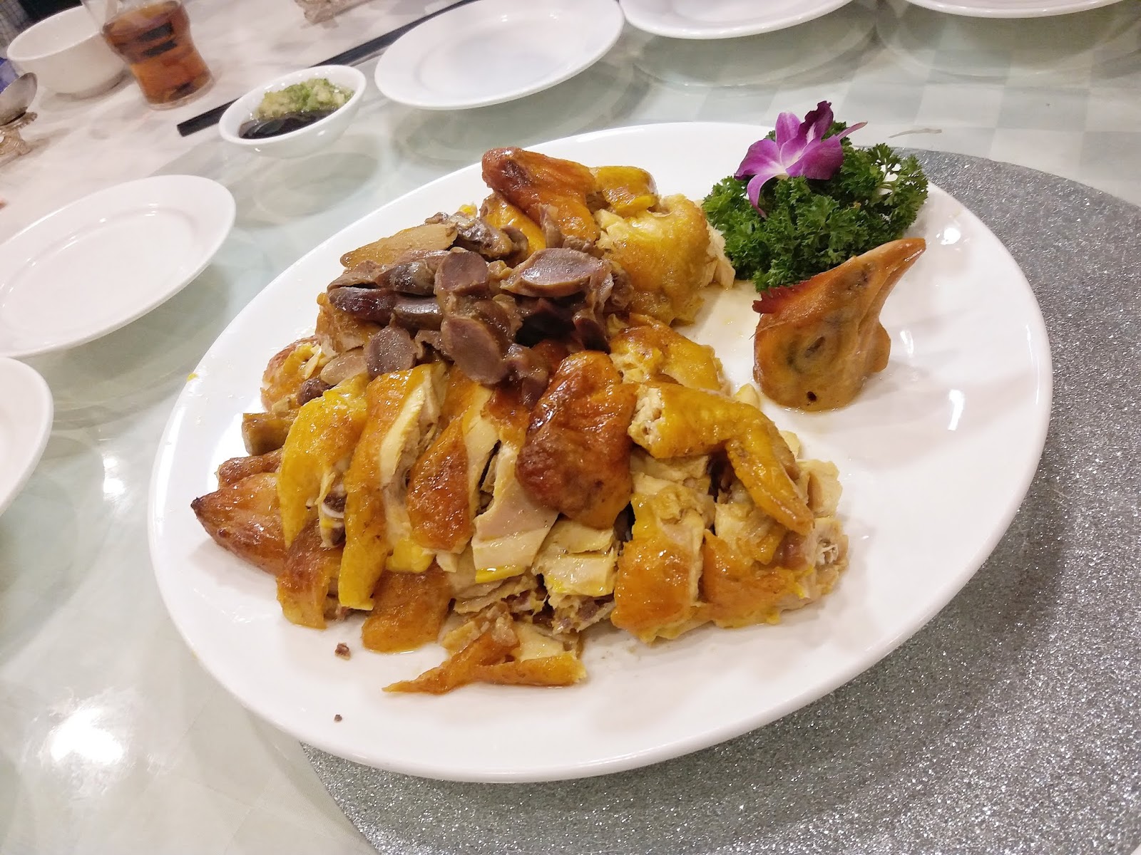 想知道是否新鮮雞,最基本是睇下伴碟有無雞什,因為只有劏新鮮雞先可以保留內臟,冰鮮雞沒可能出現。