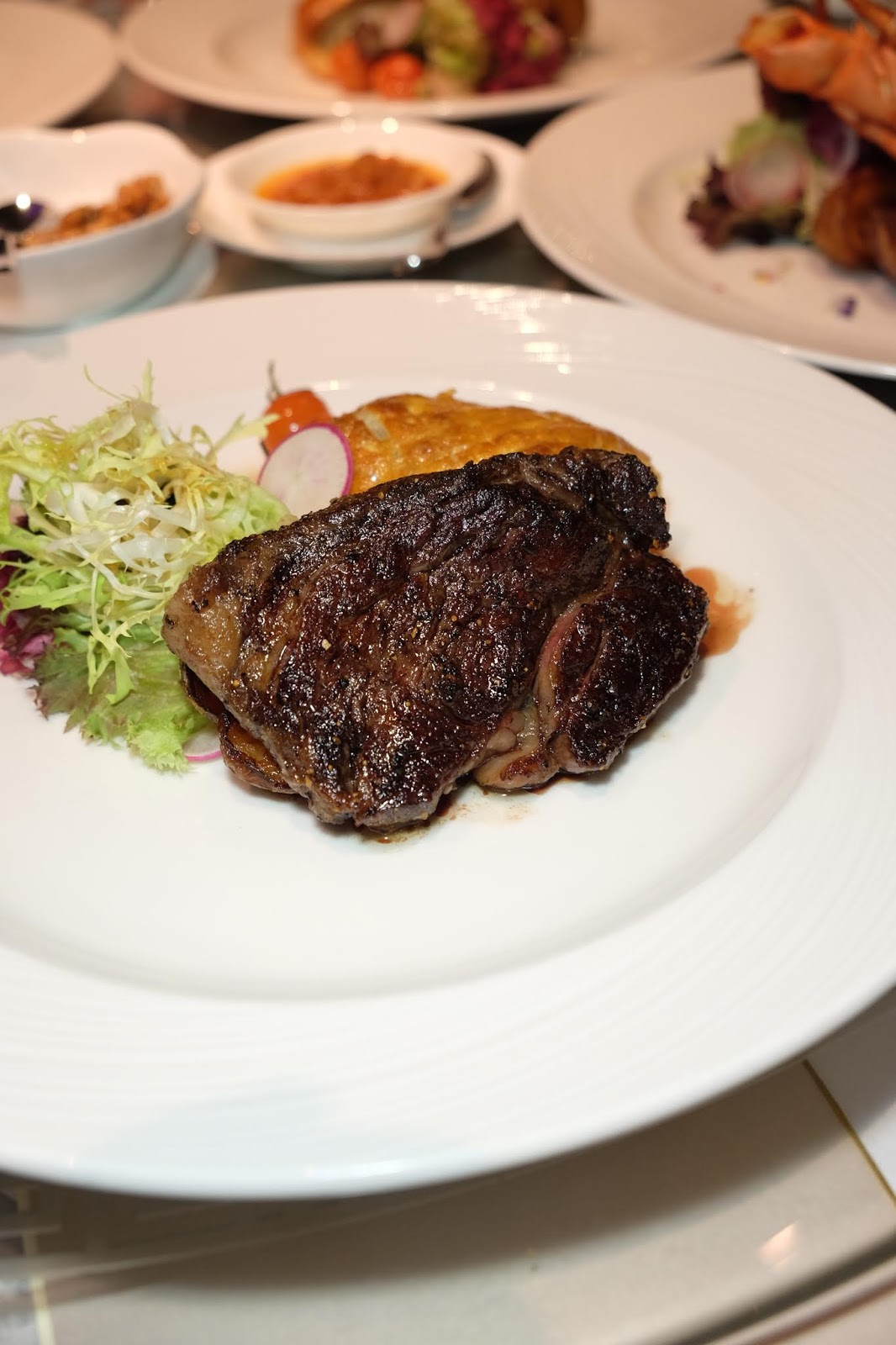 撇除了海鮮,換上M5和牛是更加精彩,medium rare火喉控制得恰好,滲出絲絲血絲,入口滿有香氣,肉質鬆軟,簡單的灑點鹽來提鮮,真是人間極品。