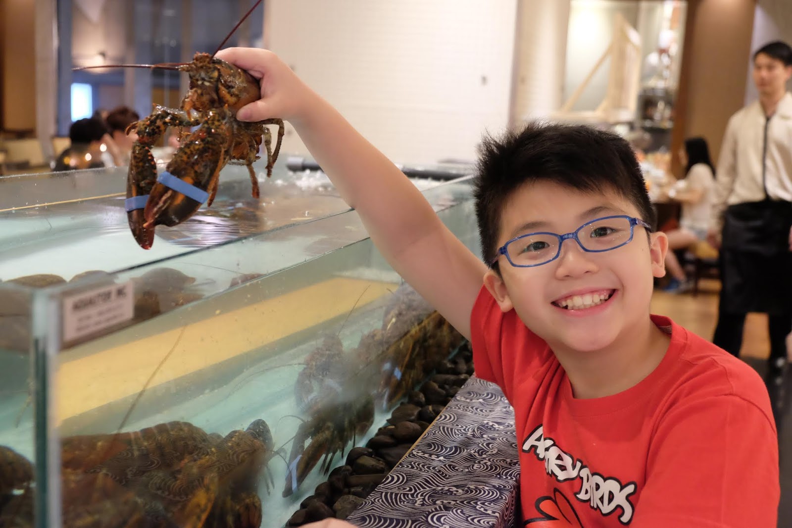 上次一家四口已經食過築地直送刺身,以為今次都是一樣,原來餐廳再次加強陣容,每位客人由A4和牛,改成即蒸半開波士頓龍蝦,仲要隻隻游水貨,真係未食先興奮。