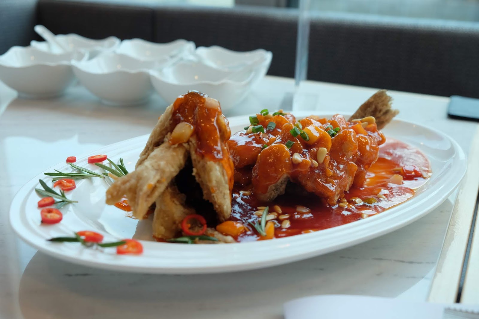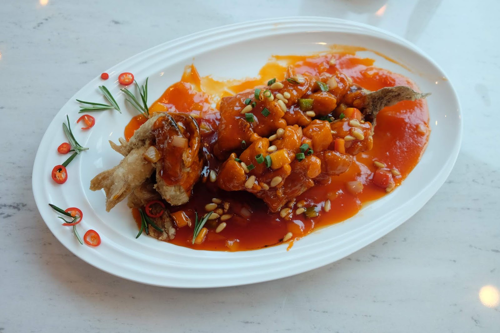 份量十足,至少斤半以上,甜酸汁調教得啱啱好,最適宜一上檯即食,因為蘸上醬汁後便好易變稔,口感便會覺得好膩。
