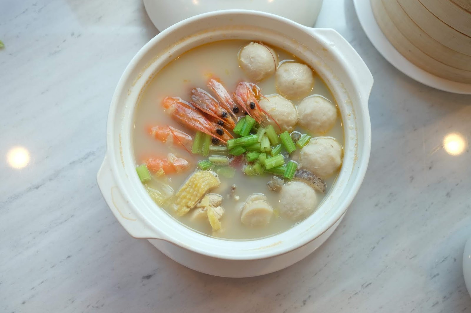 有海参、帶子、海蝦、肉丸、娃娃菜、冬菇及筍片,材料足,差不多與湯是五五比,湯味濃,湯色奶白而鮮甜得可以,不錯。
