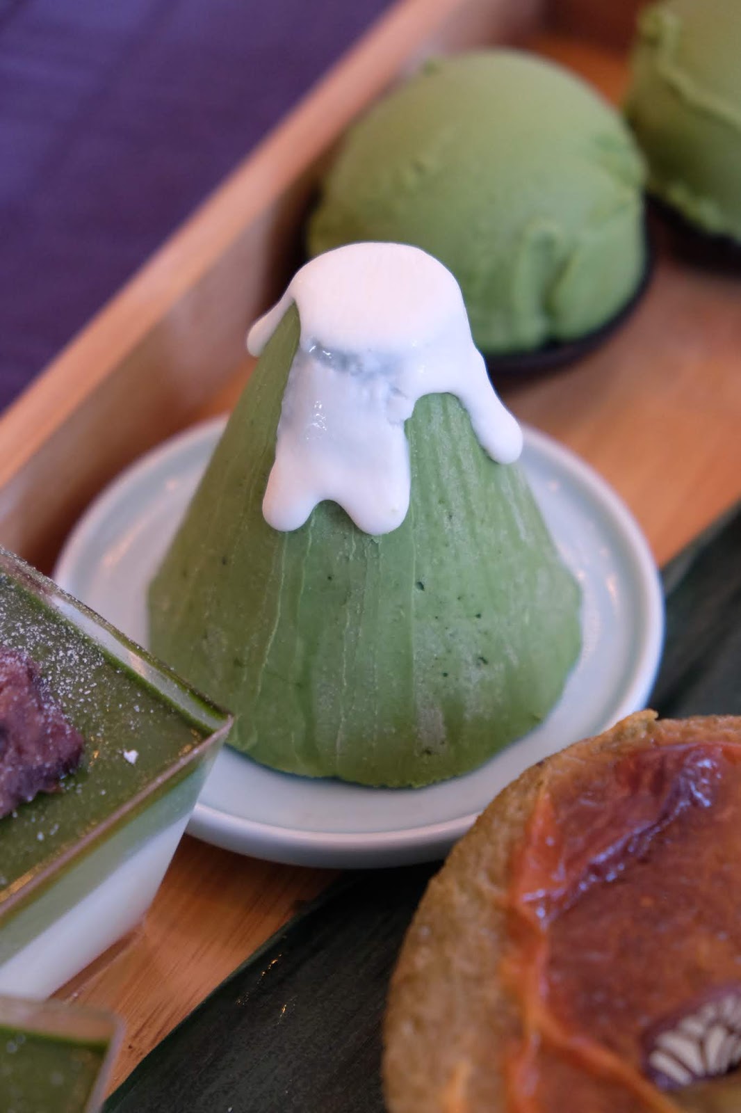 賣相似富士山,芝士味與綠茶其實好配合,但感覺太結實,美中不足,有改善空間。