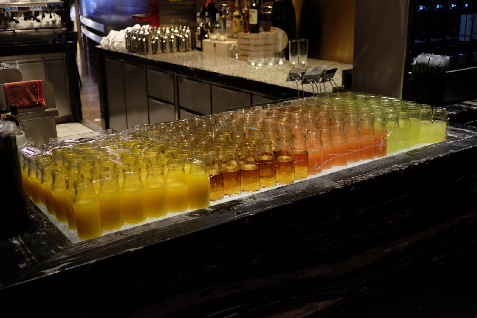 先有樽上的橙汁、西柚汁、蘋果汁及檸檬汁,客人拎起就飲得,無須排隊逐個自己斟。