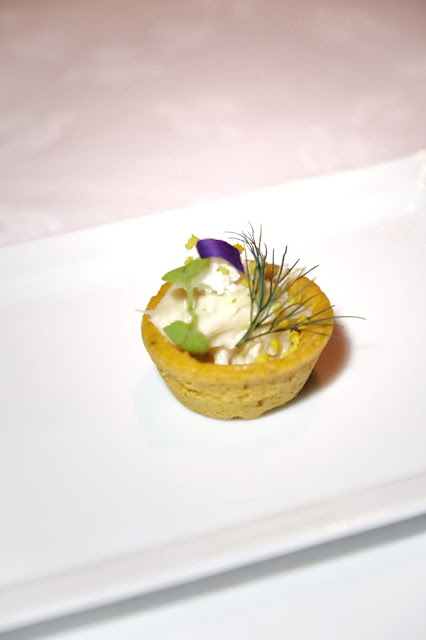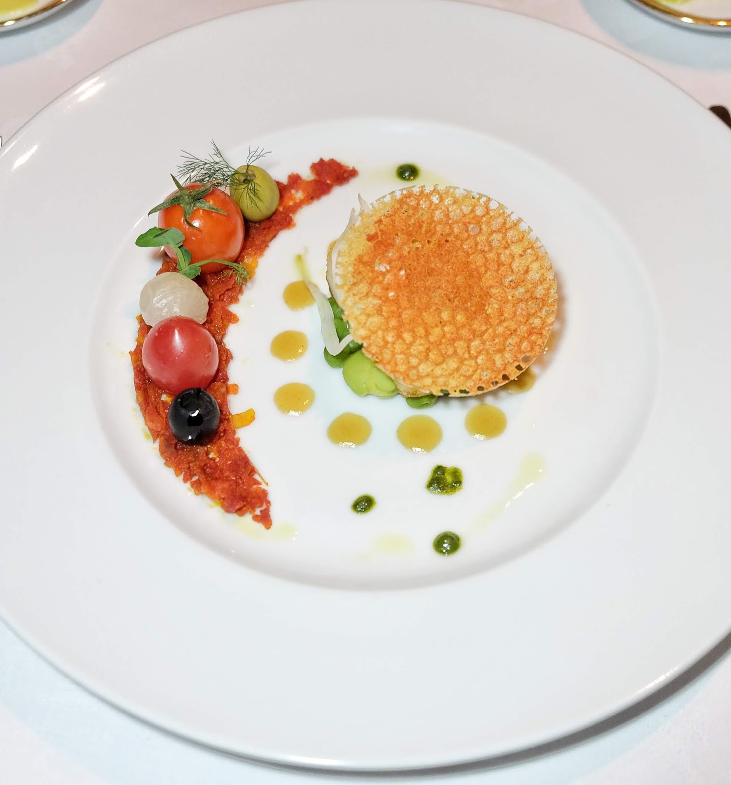 接著的頭盤,是醒胃的風乾蕃茄配橄欖,與及迷你蟹肉撻,賣相精緻亮麗,微酸與鮮甜夾雜,的確不同凡響。