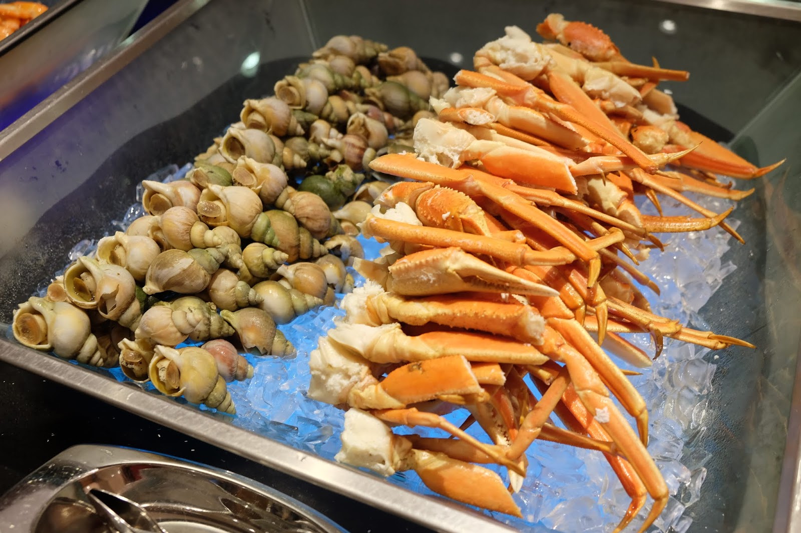 有阿拉斯加皇后蟹腳、翡翠螺、海蝦及青口,首選蟹腳,因為肉質鮮甜,食幾多都好似未夠。