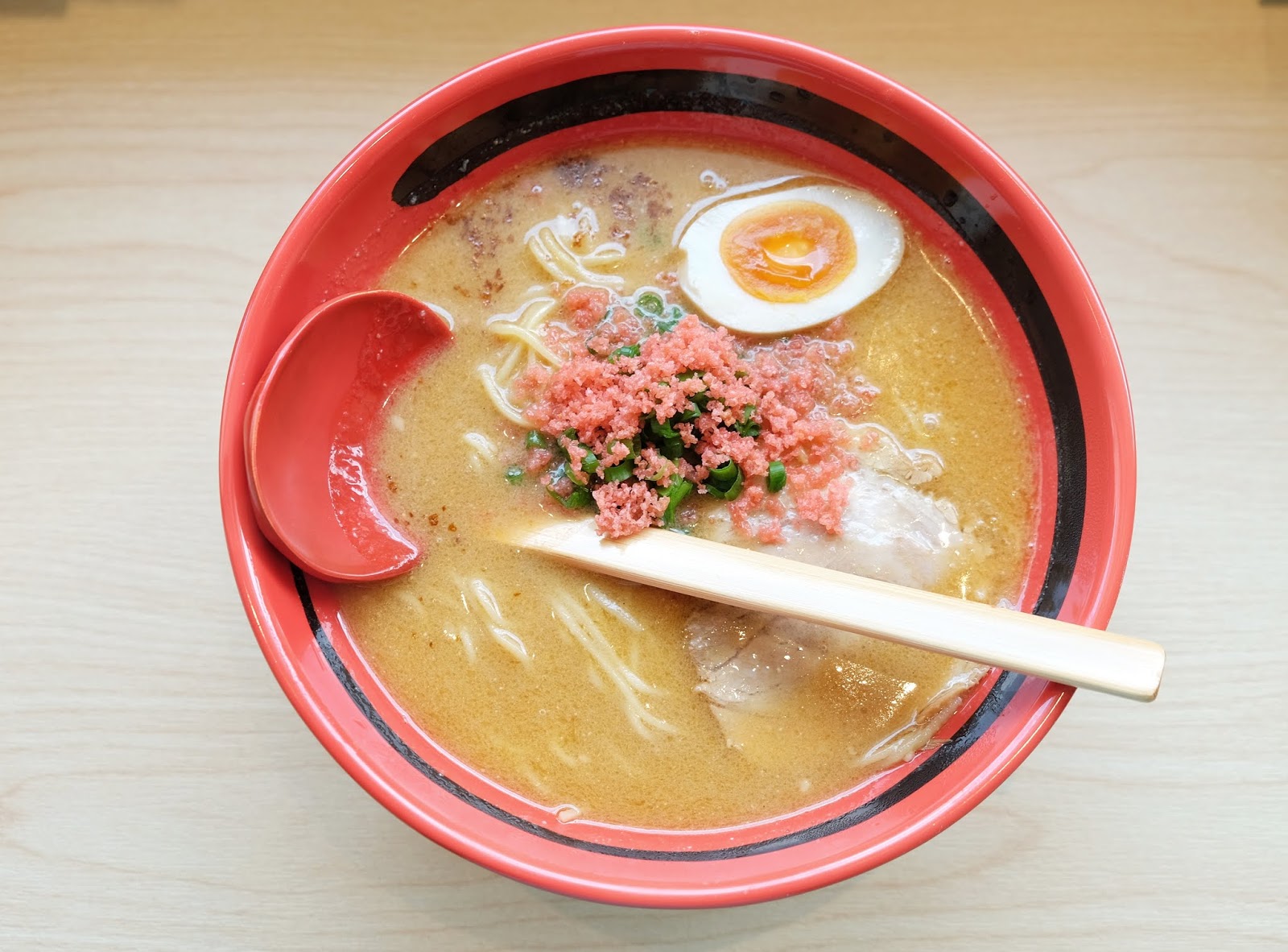 今次店方推出了九龍店獨有的特濃蝦汁叉燒拌麵($88),單睇賣相,色彩分明,紅、白、黃、青相間,麵酥、青蔥、紫菜、叉燒夾雜,不錯,麵身選用粗身麵條,而特濃蝦汁早已放在碗底,進食前可以拌勻,但個人覺得蝦汁可以另上,好讓客人隨意調教份量。