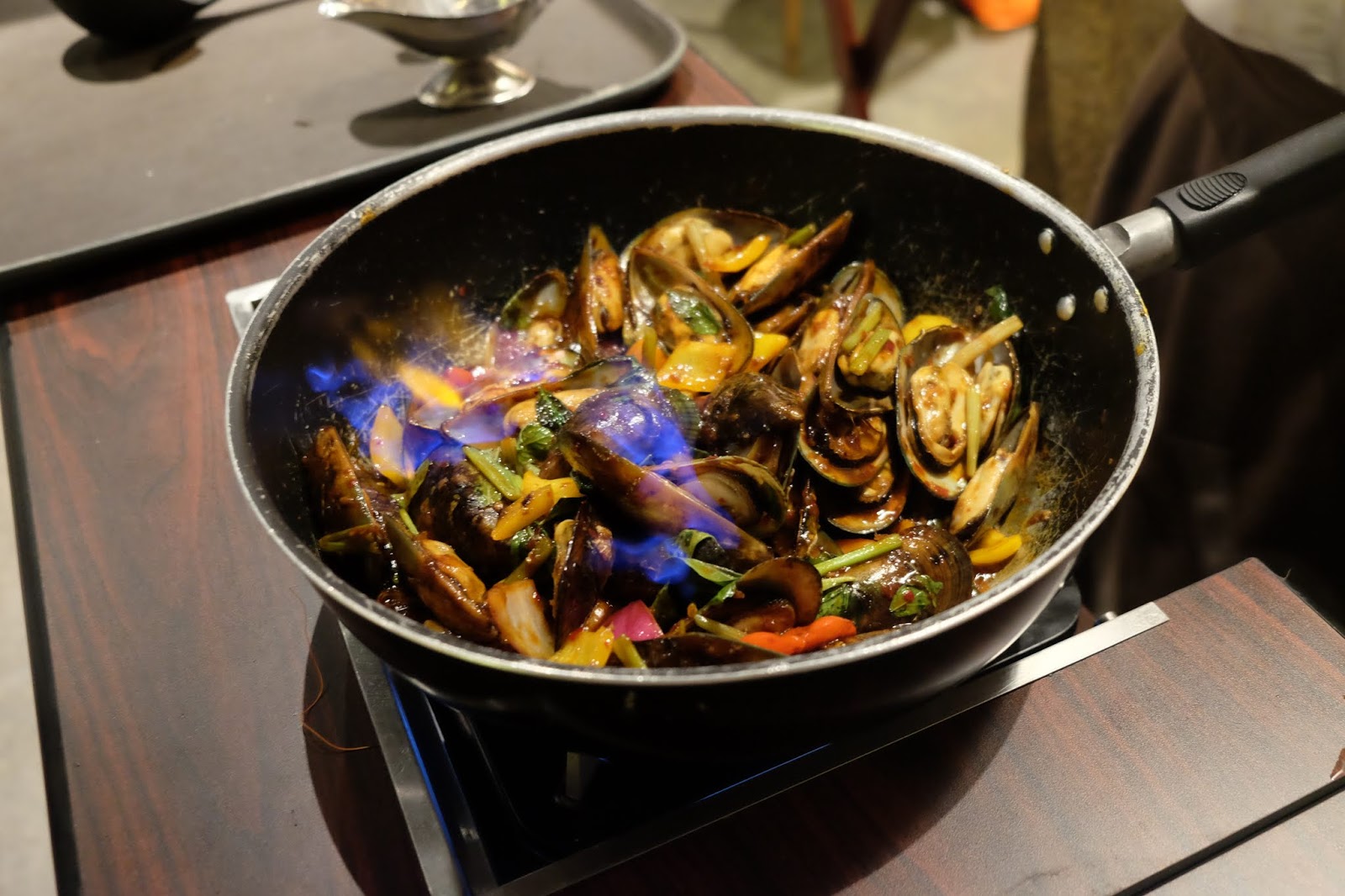 爆炒過程好香口,加入三色椒是更惹味,個人覺得主角的青口給搶去了風頭。