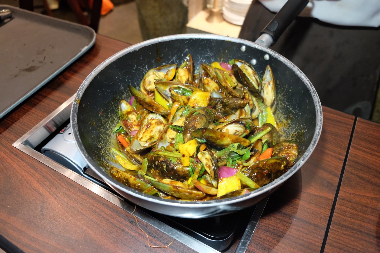 爆炒過程好香口,加入三色椒是更惹味,個人覺得主角的青口給搶去了風頭。