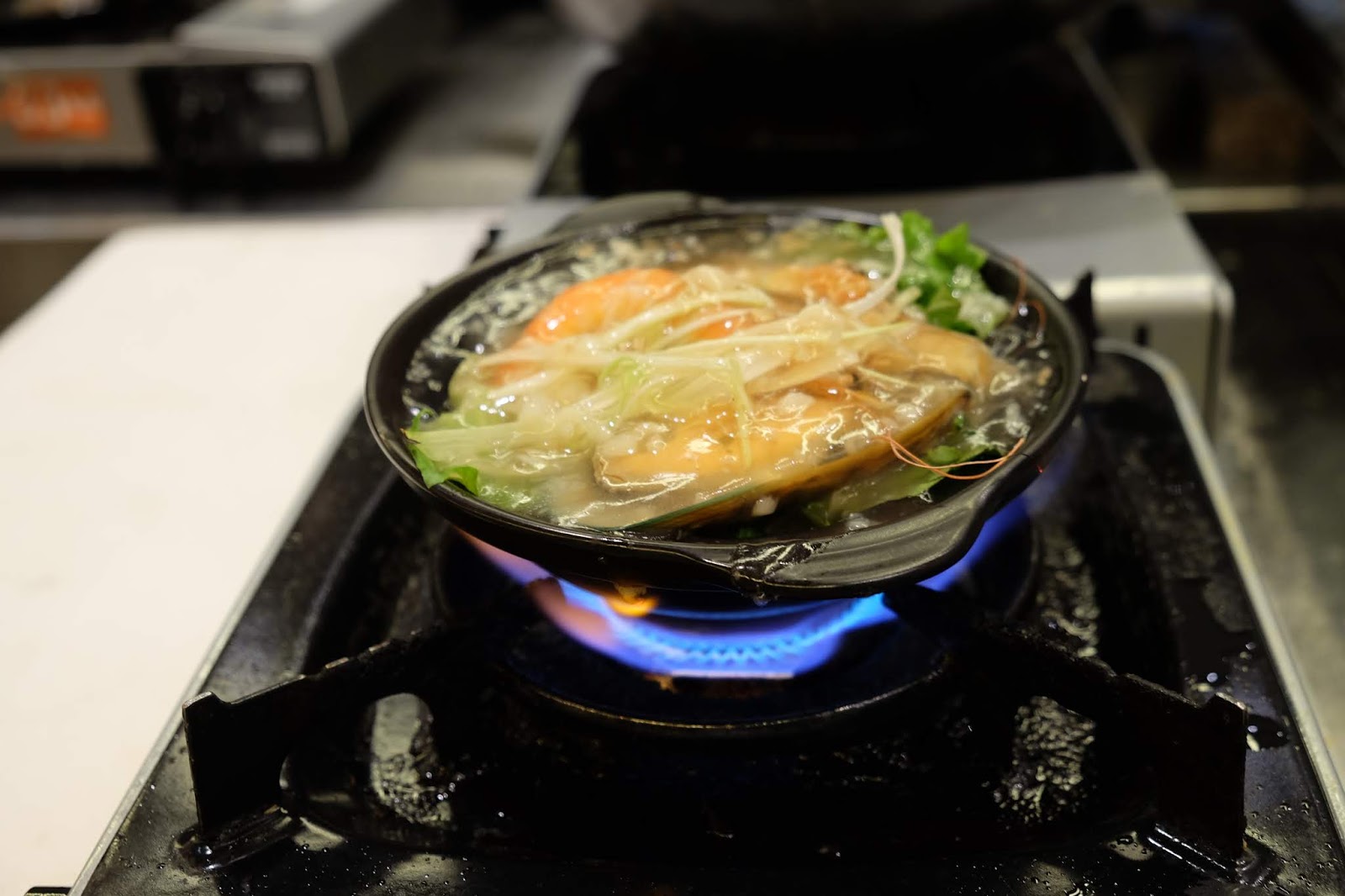 有即煮海鮮鍋,配料都是海蝦同青口之類,客人可以選擇蒜蓉汁、咖哩汁或薑蔥爆炒,今次選了蒜蓉汁,因為夠蒜香,不錯。