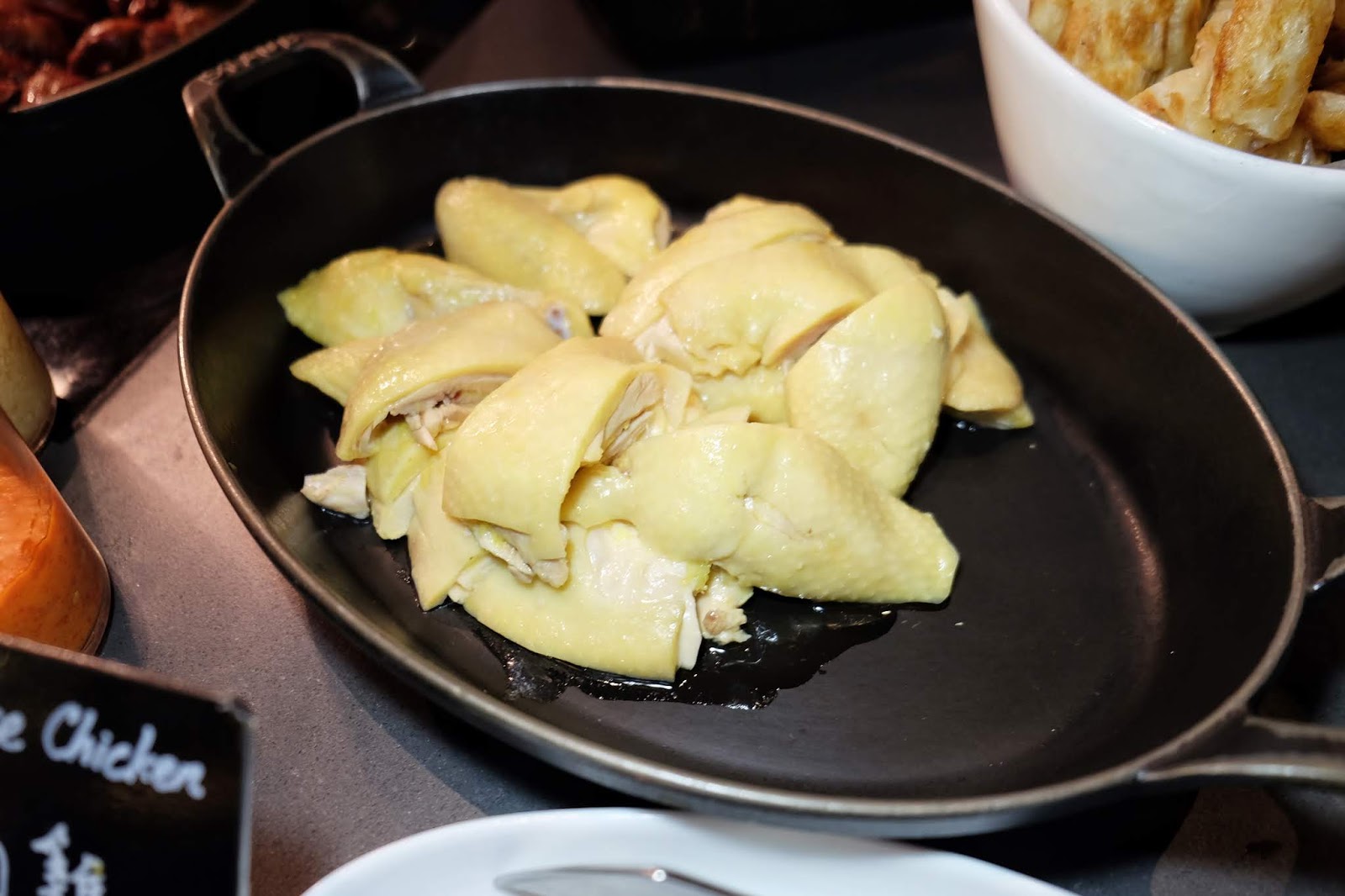 可自行配上雞油飯,飯粒乾身,個人偏好油份比較重,但雞肉嫩滑略嫌雞味稍淡,不過是普遍現象。