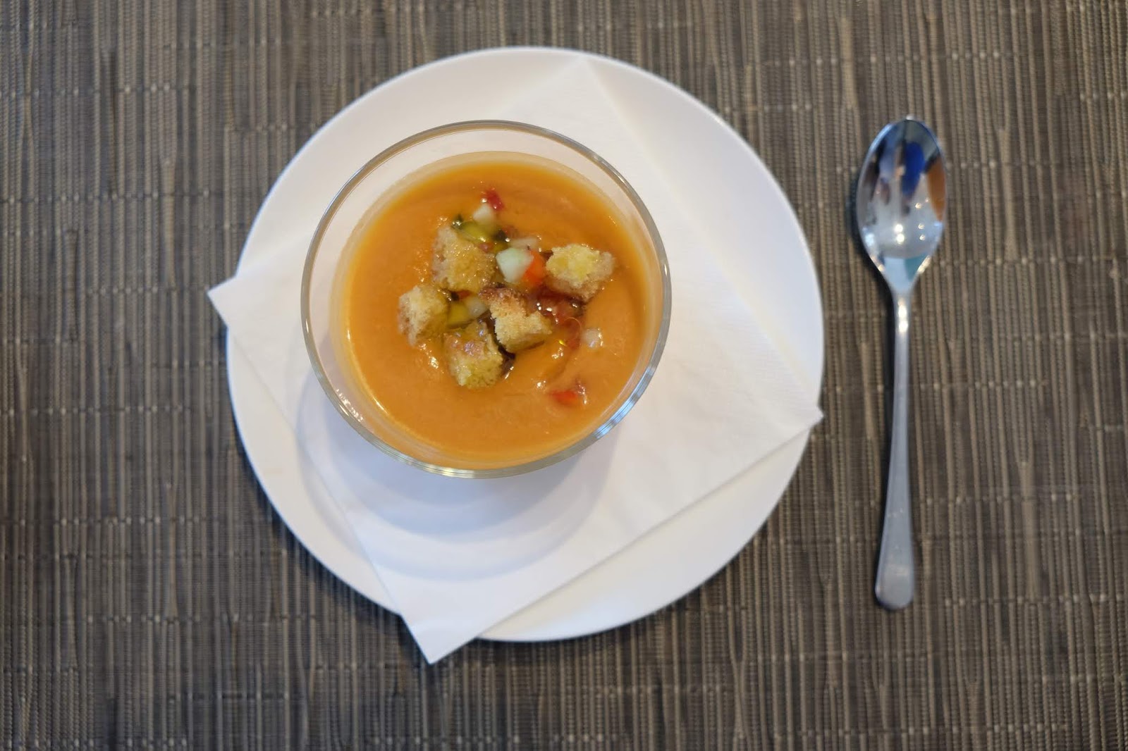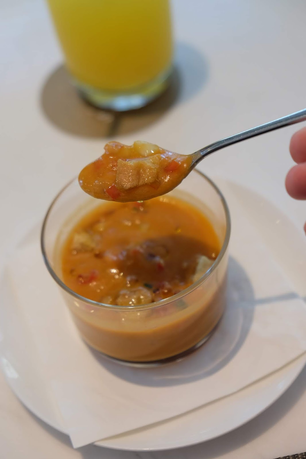 很傳統的西班牙菜色,質感不太濃稠,但呷起來,每口都是清新的蕃茄味道,又凍又酸,令人胃口大開。