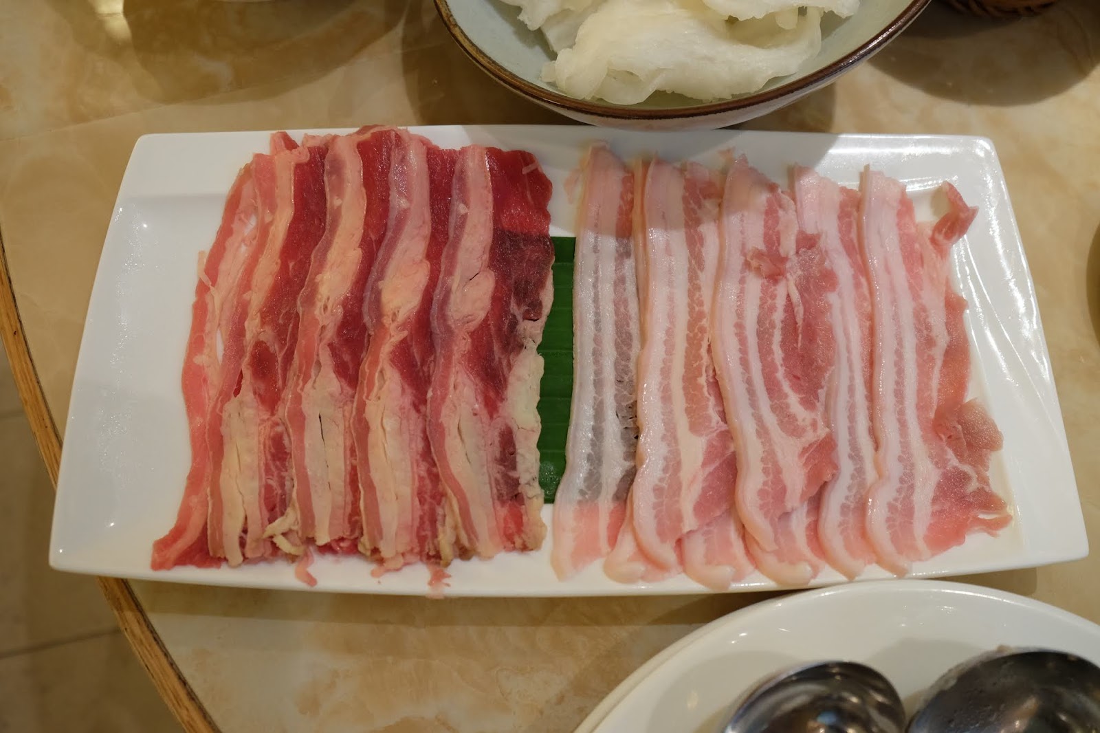 再來是安格斯雪花肥牛及西班牙黑豚肉,牛肉簡單的灼十零秒,剛剛熟最好,滑溜又富肉味,而黑豚肉就有嚼口,只是對於牛魔王而言,份量有點不足,吃起來未夠過癮。