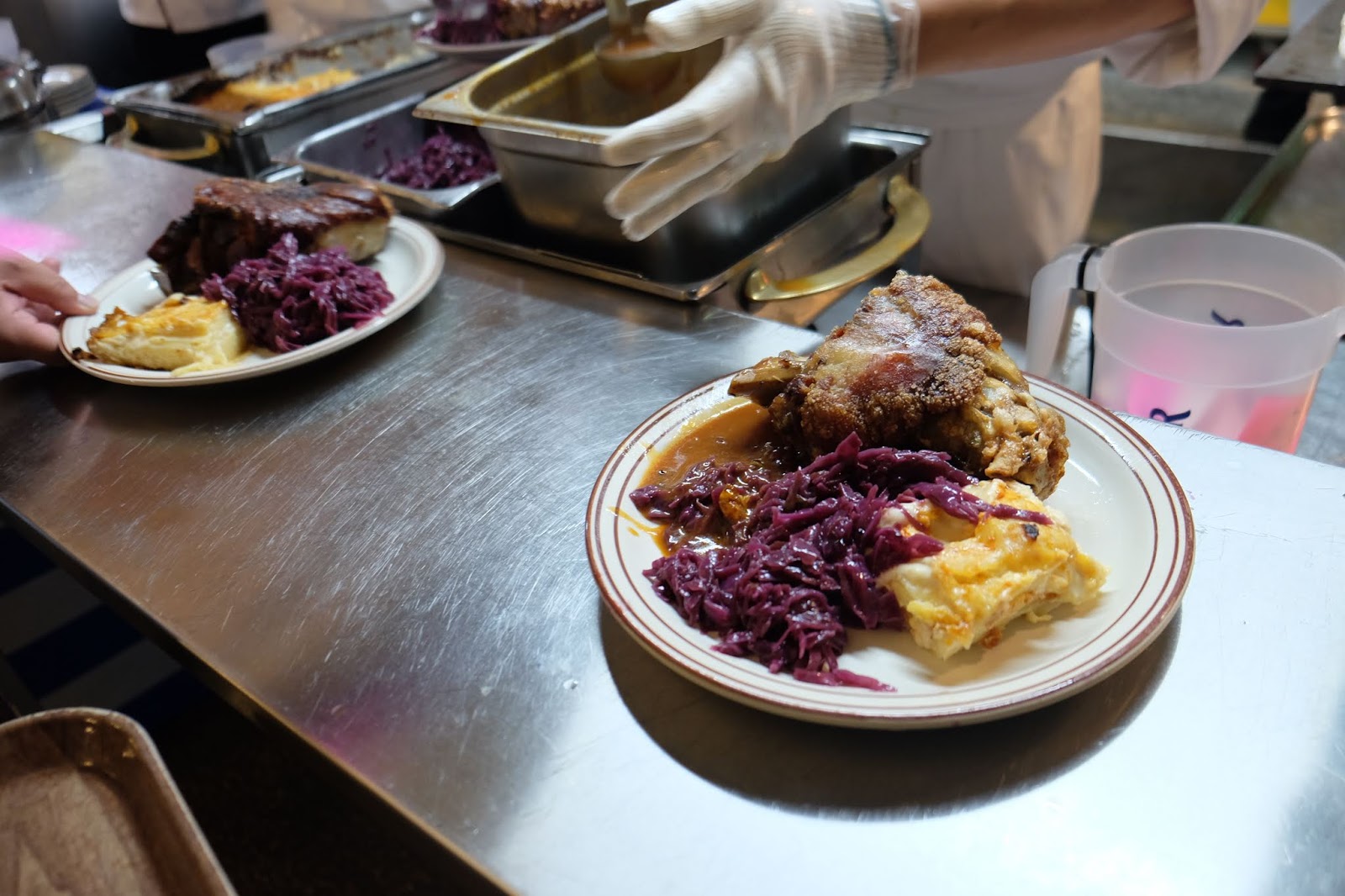 燒豬膝配燴紅椰菜及芝士焗薯片($185)