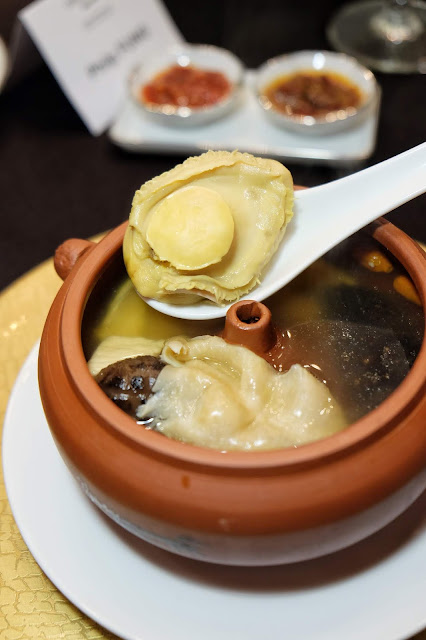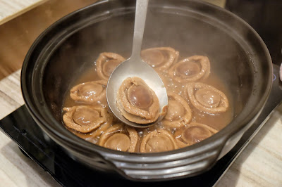 乾鮑泡浸最少都要兩日,難怪要預訂,而且即場用鮑汁扣煮,質地柔韌富彈性,用刀叉慢慢品嚐,的確是無以尚之的享受。