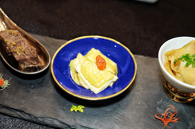 一般在享用前菜時,都是由淡至濃,牛面頰多數被歸納成壓軸前菜,但想不到大廚竟然提議牛面頰打頭陣,大概是加入桂花陳酒,減輕了油膩的口感吧!的確牛肉咬落鬆軟,絲毫不費勁,幾特別下。