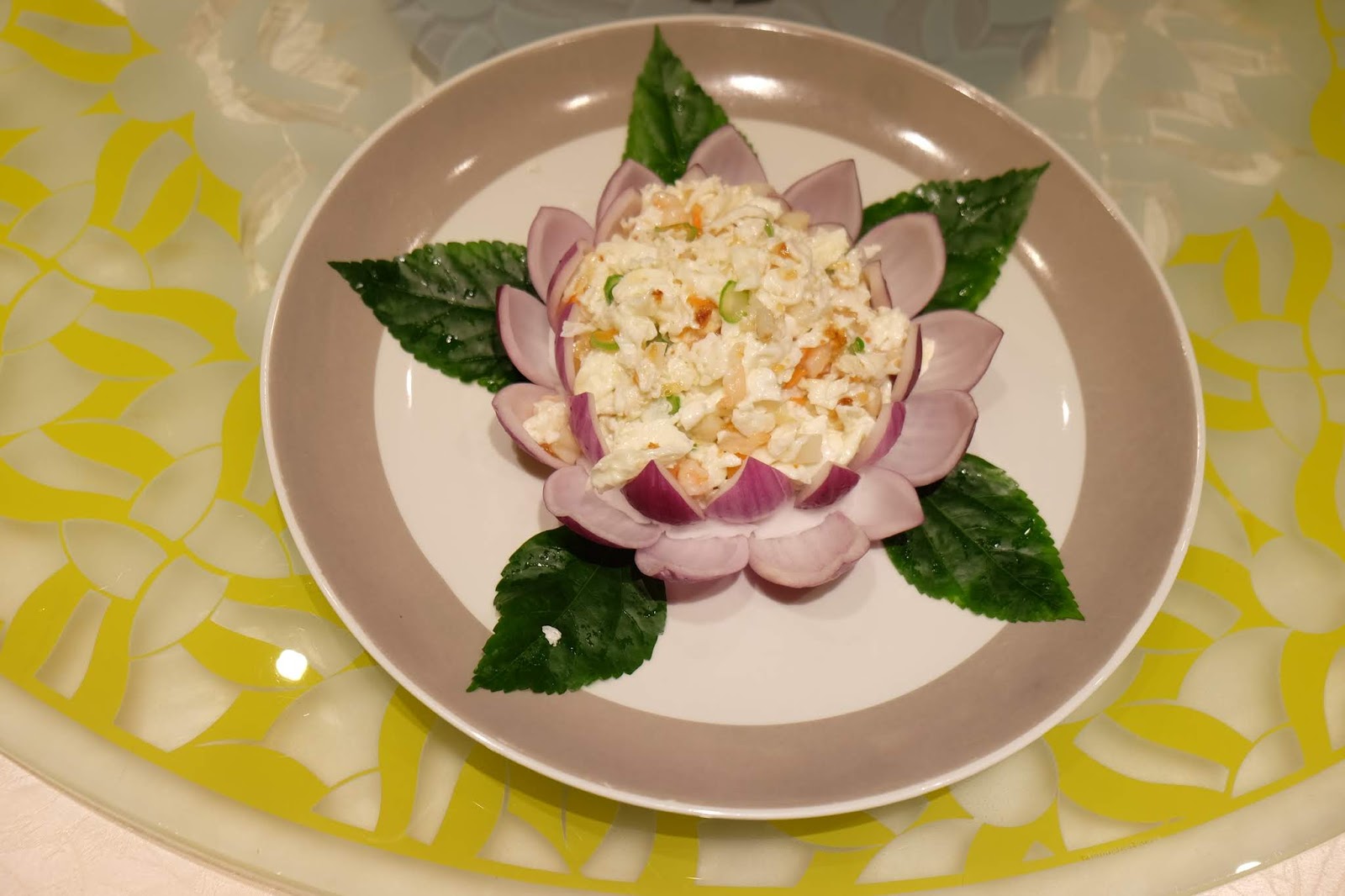 賣相亮麗,以洋蔥割開,看起來彷彿是蓮花座,蛋白粉海鮮料及山桃膠,口感有層次,而且幾香。