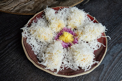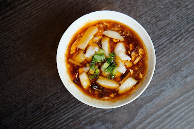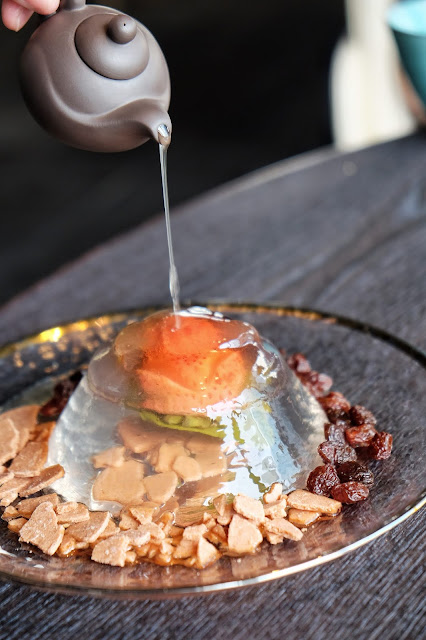 店方推介的甜品,賣相亮麗,冰粉內藏了草莓,而質感似大菜糕,伴碟的山楂片及葡萄乾,吃起來更有層次,雖然味道稍淡,但幾有特色。