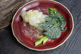 賣相令人聯想城中另一名物「欖菜玉珠」,只不過今次更相宜,睇落彷似是一串青提子,晶瑩剔透,口感軟熟清新,瑤柱絲芡汁略嫌太多,用來清清麻辣的口感是最好不過。