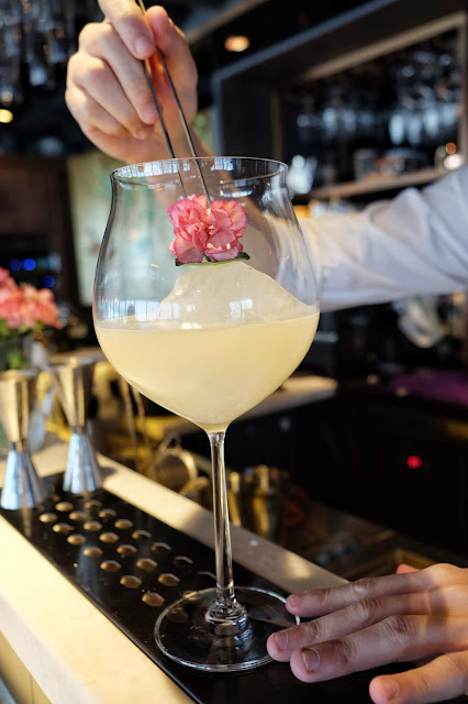 太太點了較輕盈的 Alcea Rosea,冰凍有點搖擺,所以玫瑰花好容易跌落酒中,不過以花雕及玫瑰花水,喝起來甜美芳香。