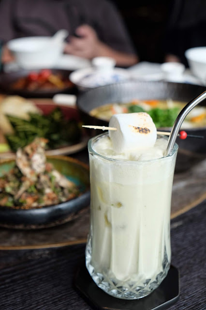 畢竟餐廳走的是型格路線,設有酒吧,所以有雞尾酒之類提供,幫囝囝點了杯不含酒精飲品,偷呷了一口,甘中帶甜又香滑,不錯啊!