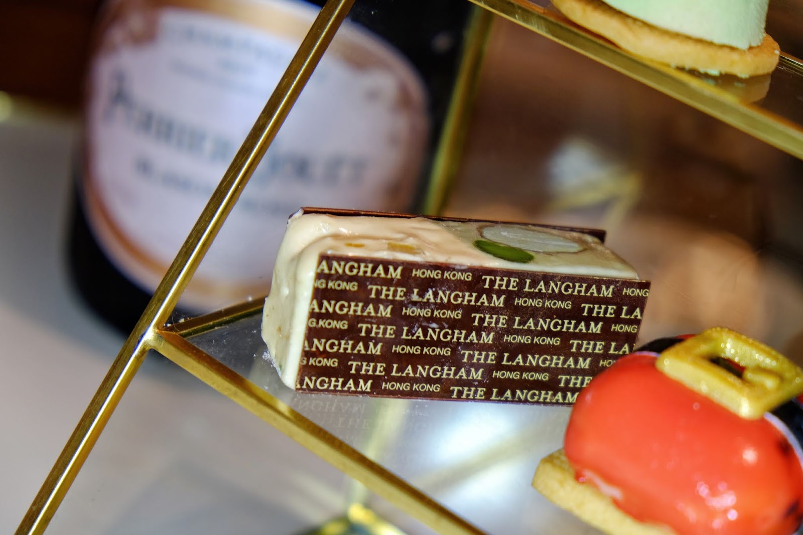 兩邊是印上酒店名的朱古力片,鳥結糖的雜乾果、開心果、杏仁及牛奶朱古力的組合,柔韌有嚼口,令鳥結糖的味道不會太單調,愛甜的朋友,可不要錯過。