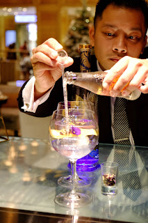 & Tonic 在調製過程中注入碟豆花水及梳打水,令色澤慢慢轉換,晶瑩剔透,有如魔法一樣,真有趣。