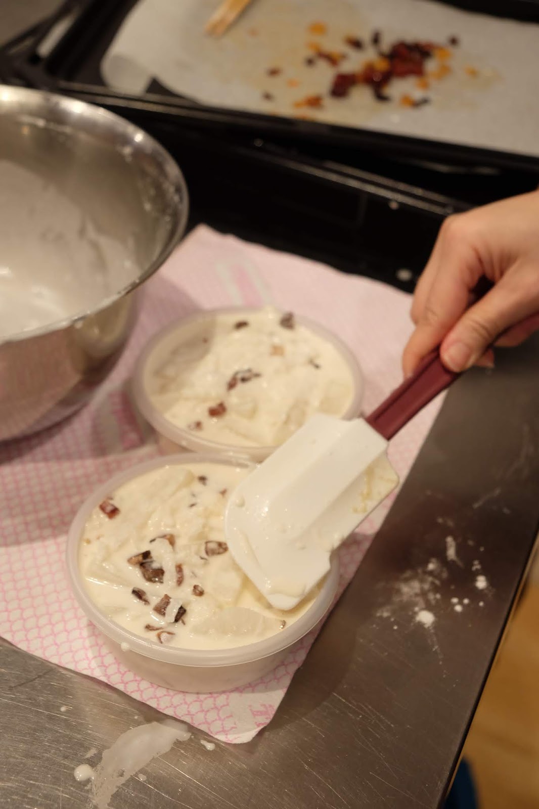 拌勻材料後,倒落有小丸子圖形的小盒子內,然後蒸熟,冷卻後放入雪櫃,想食時拎出再反轉脫模,小丸子及花輪同學的佻皮可愛樣子便躍然出現,的確是玩得又睇得,仲可以食得,W W 啦!