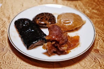 身邊朋友都知柚皮是個人摯愛食物之一,用作墊底,盡吸海味的味道,海參花膠充滿膠質,扣得又夠稔,這道傳統菜色處理得相當到位。
