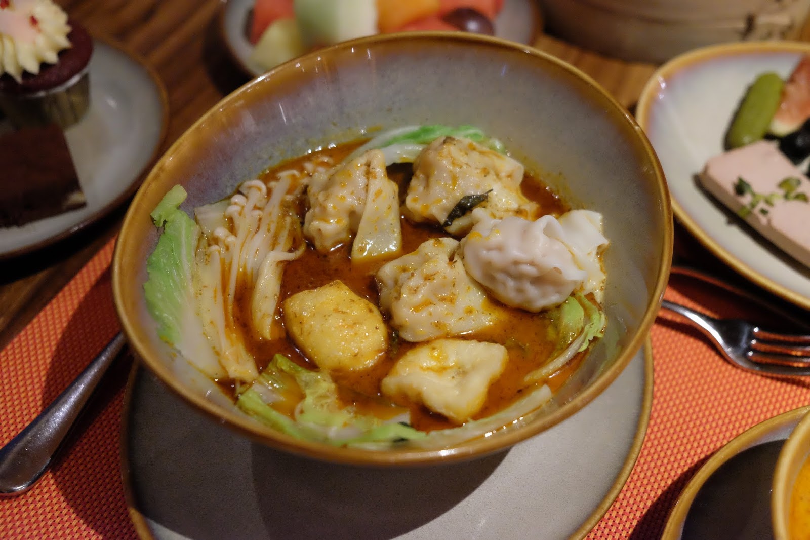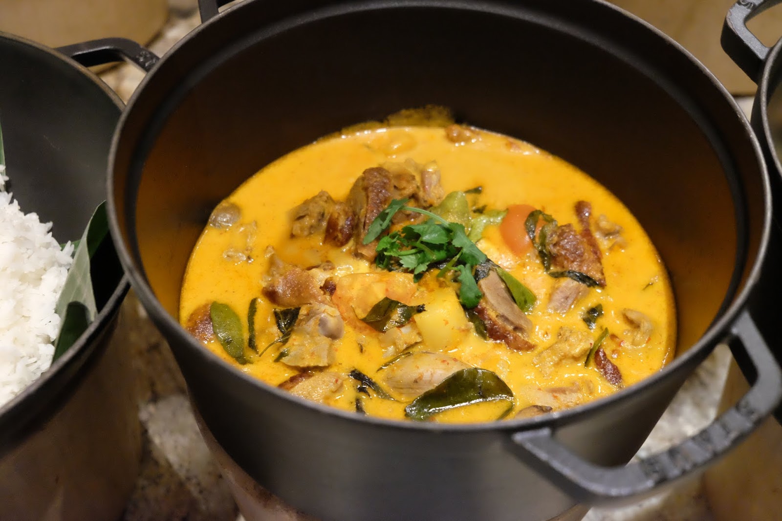 餐廳另設有咖喱區,紅咖哩燒鴨、青咖喱海鮮、印度牛油雞、印度黑豆咖喱、蔬菜咖喱及蕉葉蒸飯。